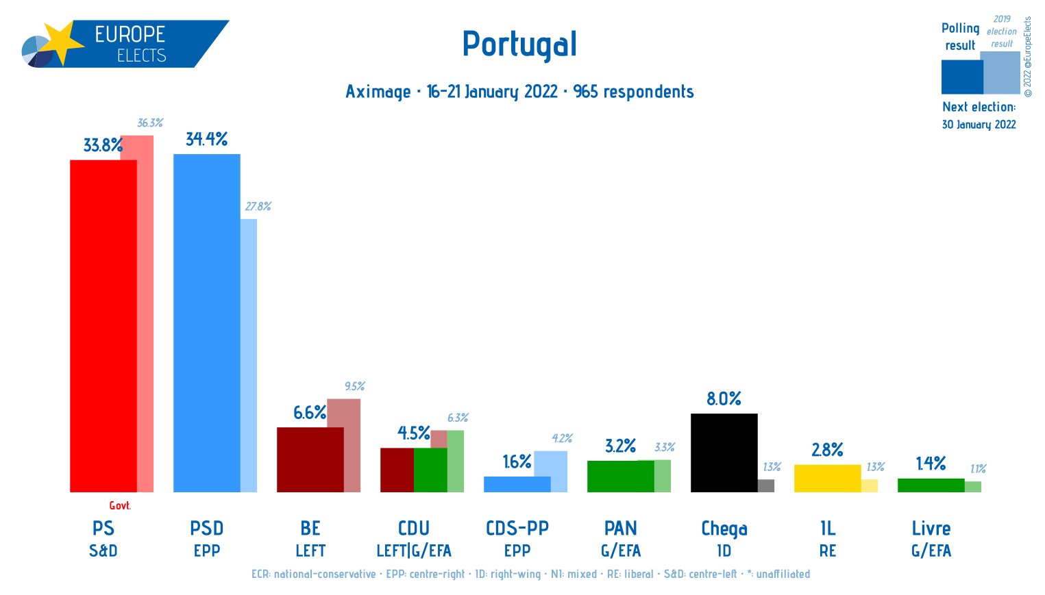 Both parties — the PS and PSD — polled well shy of a working majority, which means they will have to negotiate post-election alliances. The combined left still has a small lead, the poll showed. “It will be a close fight until election day,” said Adelino Maltez, professor of political science at the University of Lisbon, attributing Costa’s drop to his repeated attacks on the PSD, which largely avoided trading barbs. “This alienated… the average voter who is pragmatic and not committed to political struggles,” Maltez said, adding that Costa could still come out on top.
