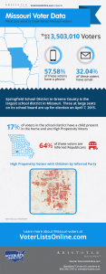 Missouri’s largest school district, Springfield, which is in Greene County, will have three at large seats on its school board up for election on April 7. According to Aristotle’s updated Missouri voter file on VoterListsOnline.com, seventeen percent of voters in the school district have a child present in the home and are considered High Propensity Voters.