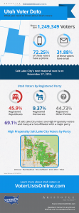 With such a large part of the SLC population being unaffiliated with a major party, the need for campaigns to have the most accurate data available is high. Aristotle’s VoterListsOnline.com is available 24/7 to help you access up-to-date voter data and we recently updated our Utah file. Learn more today and see how we can help you to success in 2015.